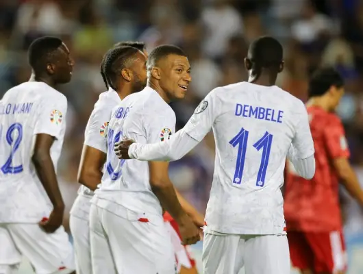 กองกลางตัวรุก: Ousmane Dembélé, Antoine Griezmann, Kylian Mbappé